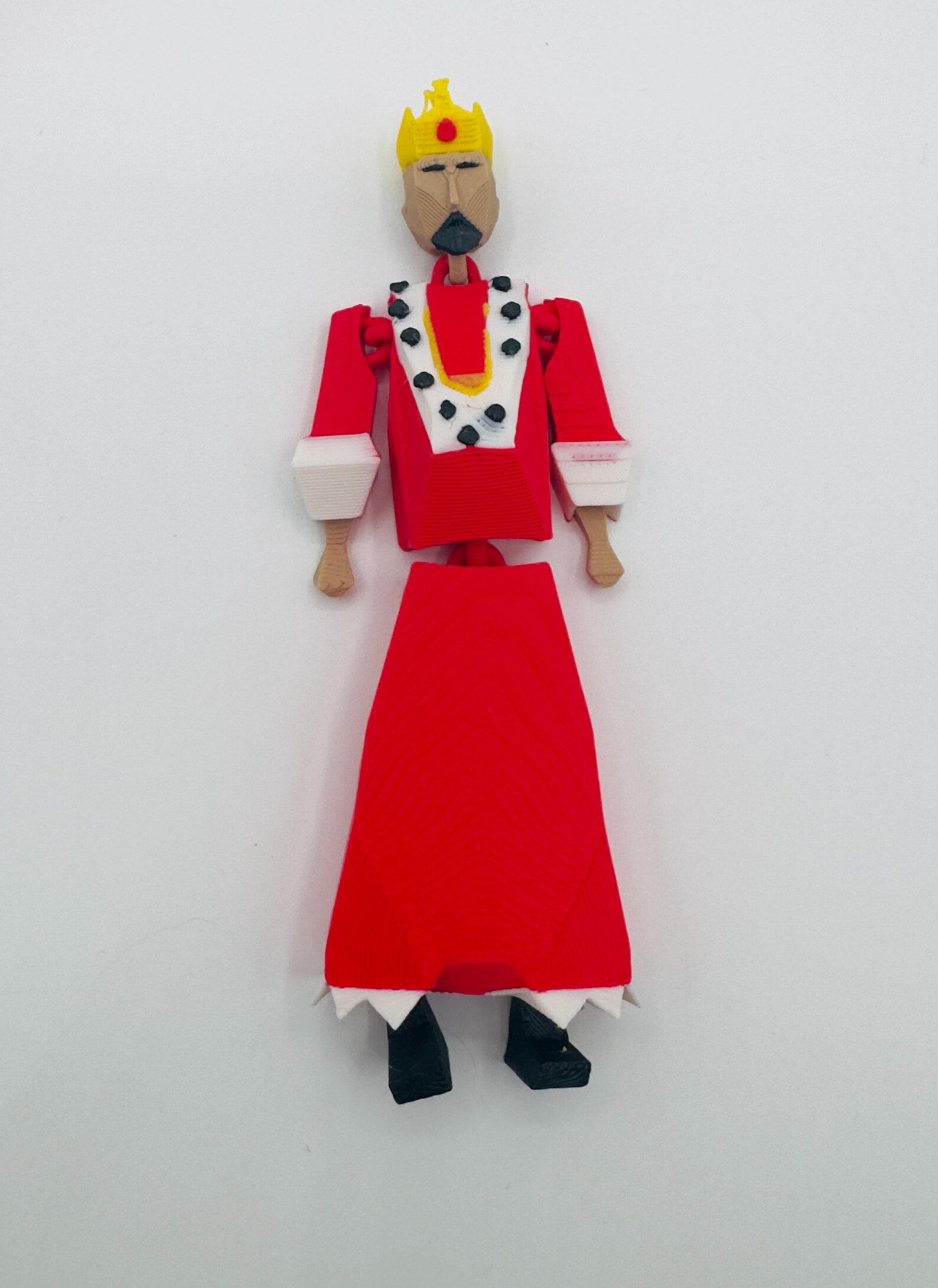 This is a 3D printed articulated OSRS King Roald figure, inspired by the iconic in-game style from Old School RuneScape. It’s built to be played with, featuring smooth, movable joints at the arms, legs, neck, and waist for wiggling, posing, and fidgeting.
